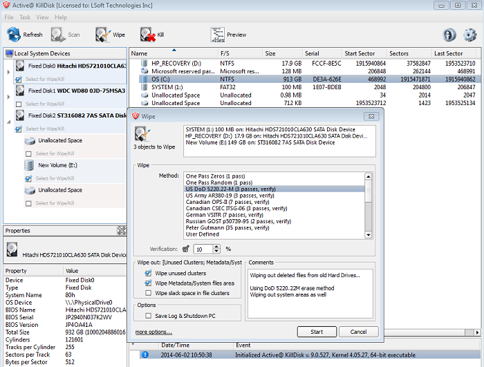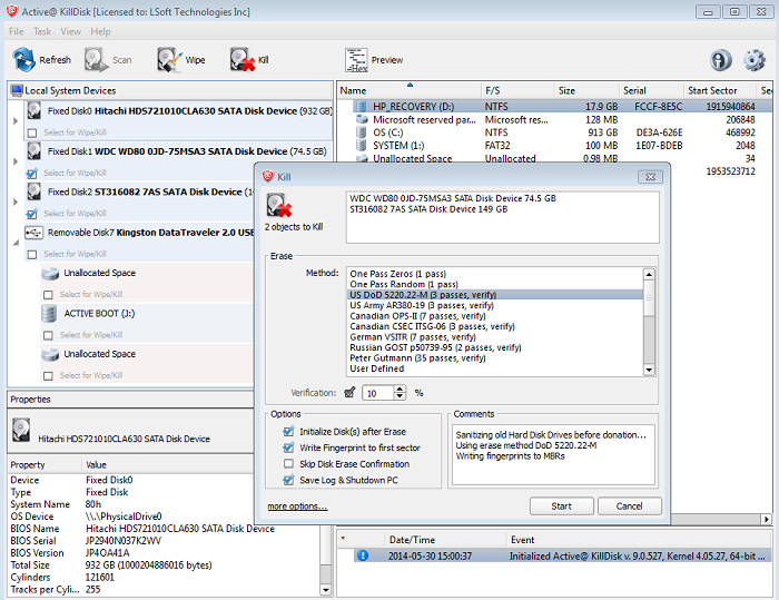 Hỗ trợ 24 phương pháp xóa dữ liệu quốc tế, bao gồm cả tiêu chuẩn US DoD 5220.22 M.