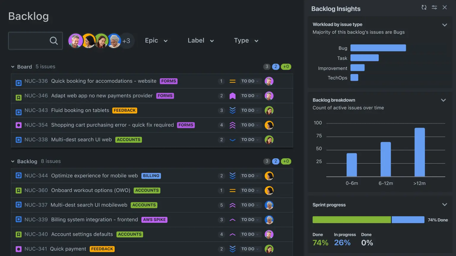 - Các nhóm Agile có thể sử dụng danh sách tồn đọng của Jira để ưu tiên tất cả công việc của họ và giải quyết một phần công việc trong đợt chạy nước rút tiếp theo.