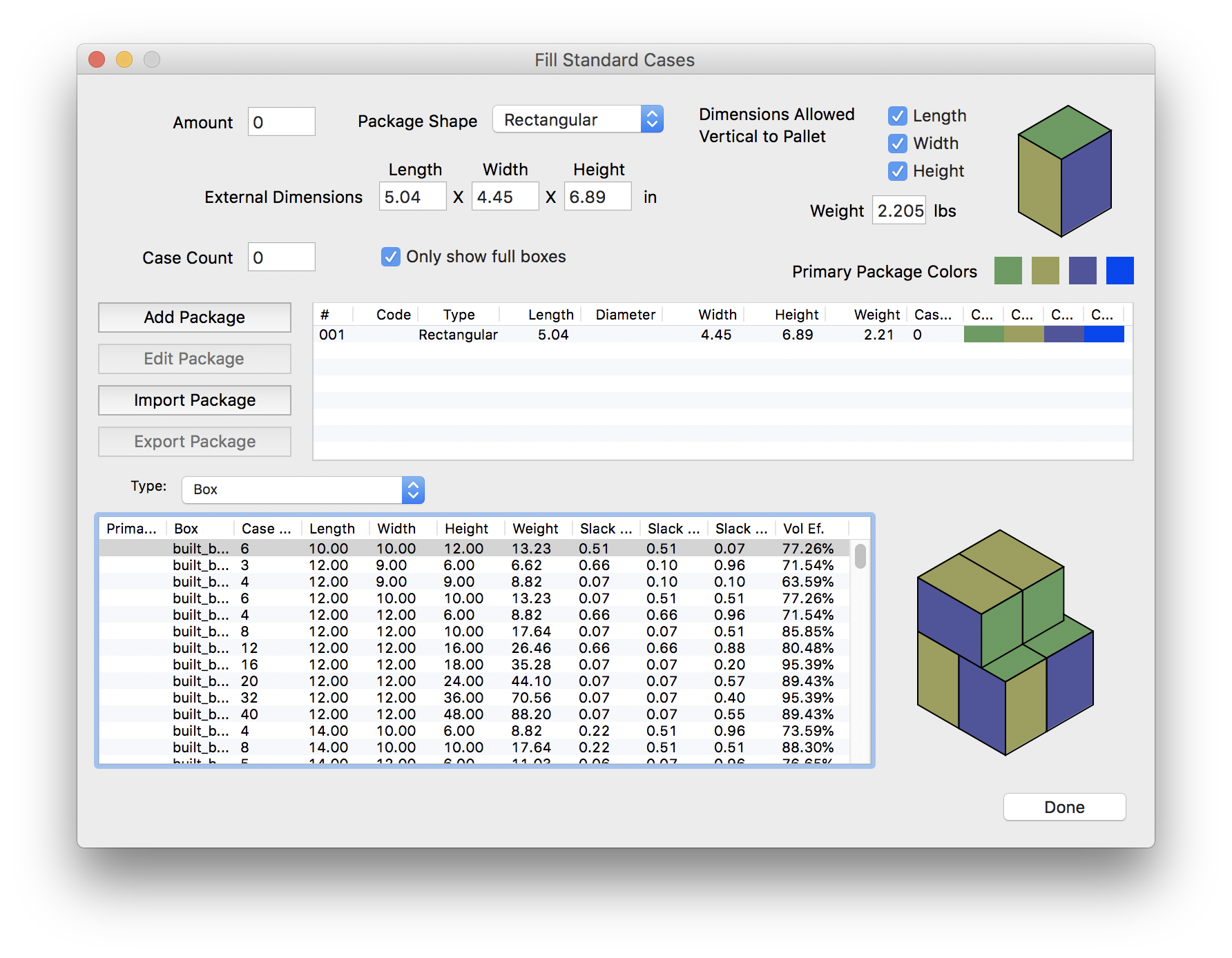 Nếu chỉ biết kích thước và số lượng thùng của bao bì chính, Quick Pallet Maker có thể được sử dụng để tính toán kích thước của các thùng mới. Tỷ lệ thùng và các ràng buộc về kích thước sẽ giới hạn số lượng thùng tạo ra chỉ ở mức có thể quản lý hiệu quả trong kho.